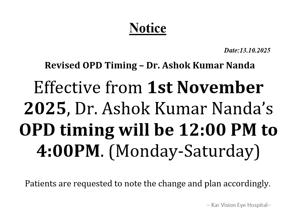 Kar Vision Eye Hospital has six well experienced ophthalmologists of different ophthalmic specialties. Most of the ophthalmologists are of national reputation. These doctors have completed their post graduation and super specialisation from the different institutes (centre of excellence) of India. Now they have an exposure of more than 20000 cases per year.
